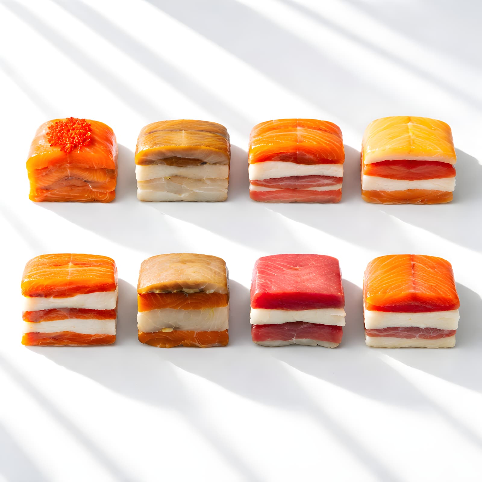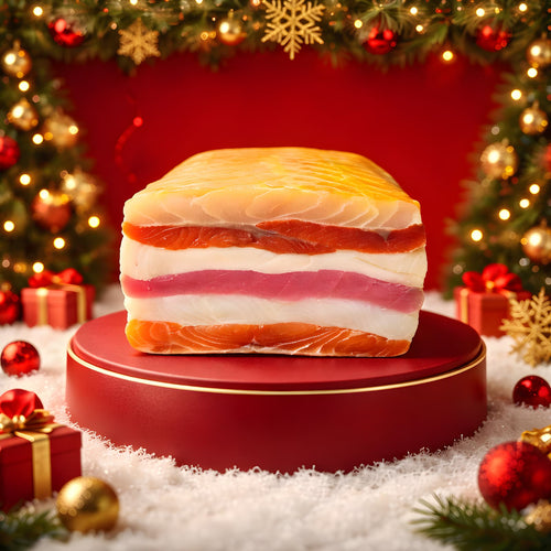 Once prepared, the fillets are stacked in alternating layers and placed under pressure. Over time, the pressure binds the fish together into a firm, cohesive loaf. During this pressing process, the natural oils and flavors from each type of fish gradually meld, creating a rich, savory, slightly smoky taste that is more complex than any single fish on its own. The different colors and textures of the fish also create a distinctive striped pattern when sliced.